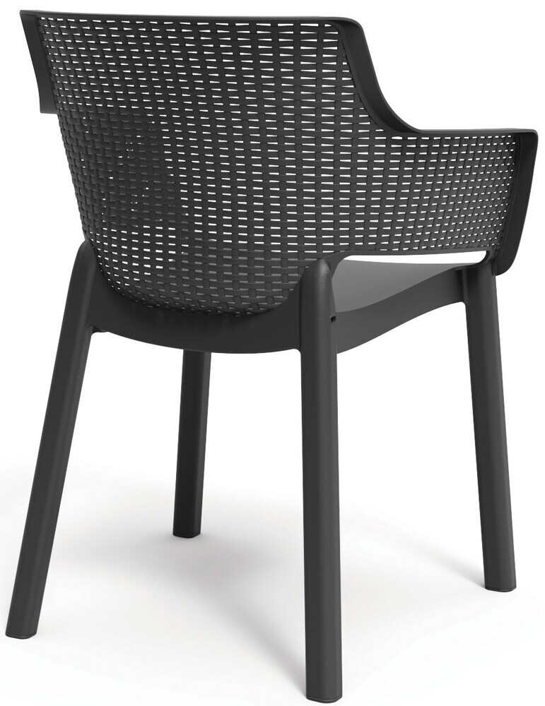 Fotelj EVA je izdelan iz plastike, ki je odporna na UV-žarke in vremenske vplive. To pomeni, da lahko fotelj brez skrbi pustite na prostem, saj ohrani svojo barvo in strukturo tudi ob izpostavljenosti soncu in dežju.