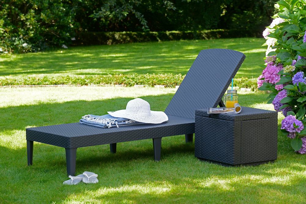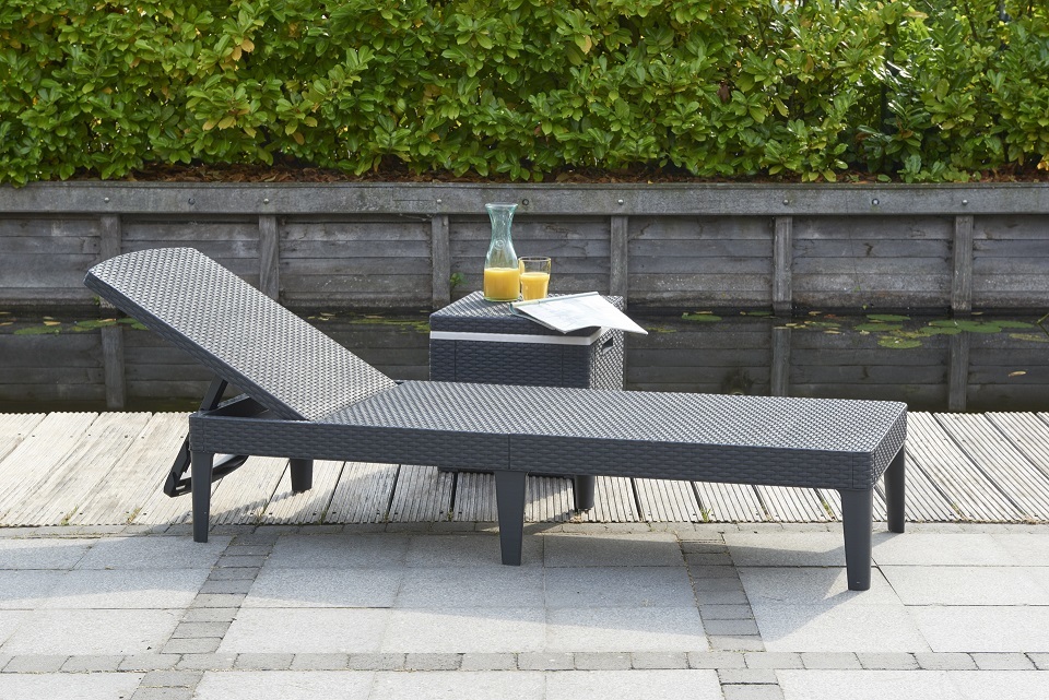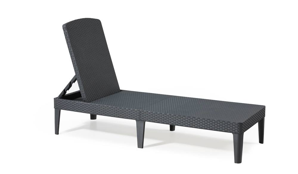 Ležalnik JAIPUR v elegantni grafitni barvi združuje funkcionalnost in slog, zasnovan z mislijo na udobje in praktičnost. Nastavljiv v štiri položaje, zagotavlja maksimalno udobje na prostem. Odporen je na različne vremenske razmere in enostaven za vzdrževanje zaradi inovativnega materiala.