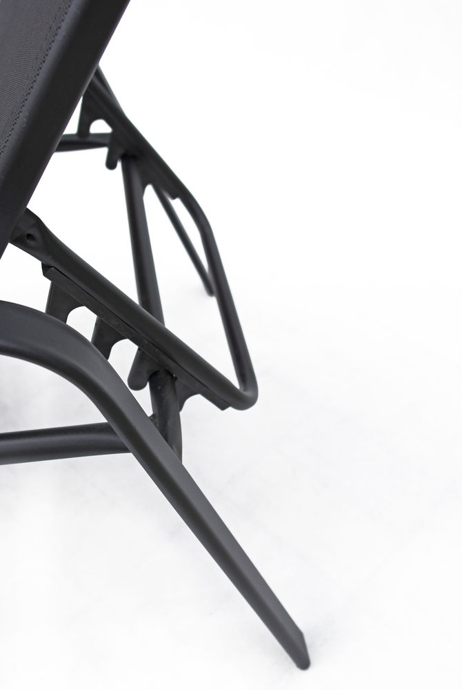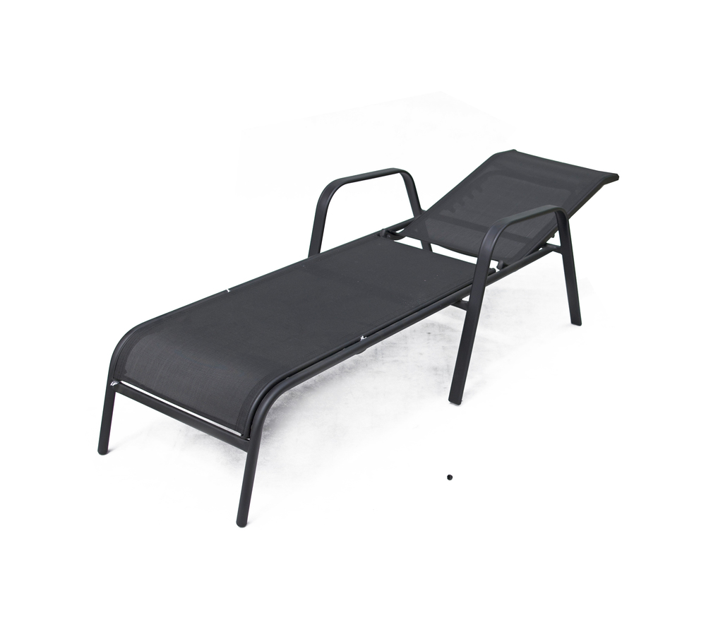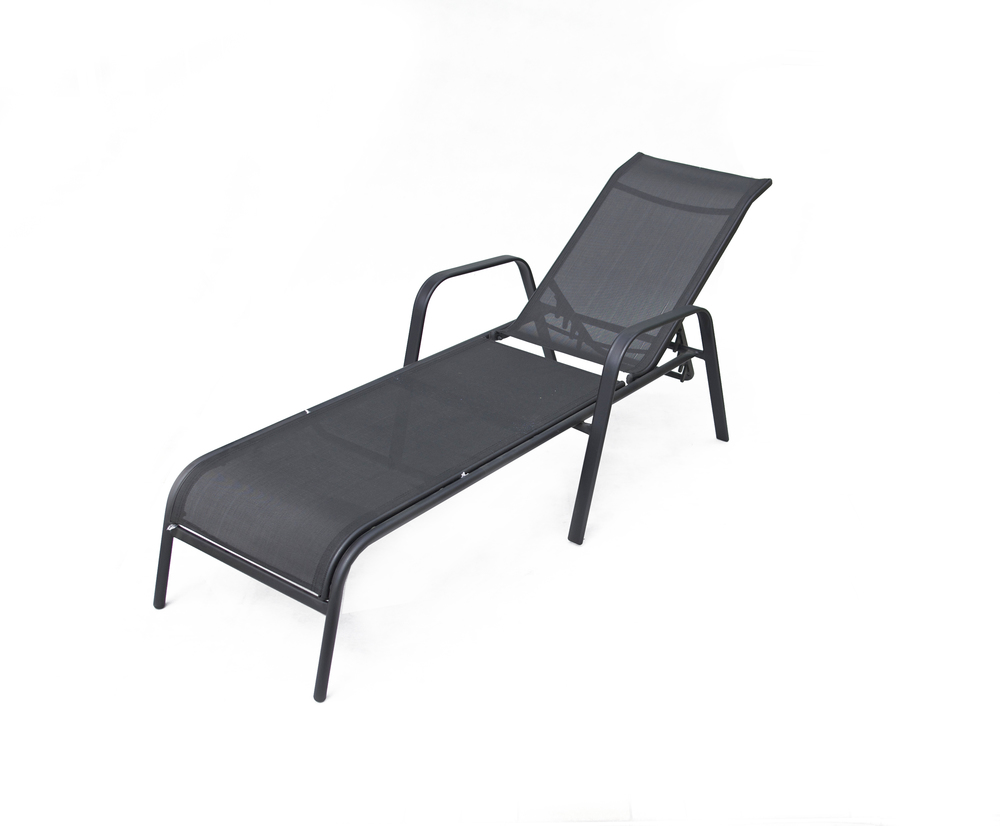Ležalnik je dobavljen kot celota s kovinskim okvirjem in napeto tkanino. Črna barva je na voljo; dodatne barvne kombinacije so dostopne za prilagoditev različnim stilom.