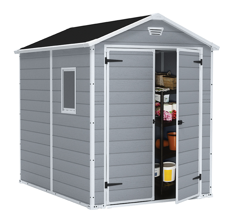 MANOR bungalov 6×8 DD ponuja optimalno rešitev za shranjevanje na vašem vrtu. S svojim brezčasnim dizajnom v sivi in beli barvi se harmonično poda k vsakemu zunanjemu prostoru. Zgrajen iz vzdržljive plastike, omogoča odlična zaščita pred elementi, z minimalnim vzdrževanjem.