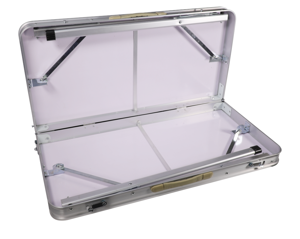 Miza za kampiranje 80x80cm zagotavlja stabilno delovno in jedilno površino v kampu ali na terenu. Z 4,5-milimetrskim zgornjim delom iz MDF plošče, prevlečenim s plastiko, poenostavi čiščenje in pripravlja prostor za obroke ali pripravo opreme. Aluminijasta ogrodja zmanjšajo težo za lažji prenos, medtem ko zložljiva zasnova omogoča kompaktno shranjevanje.