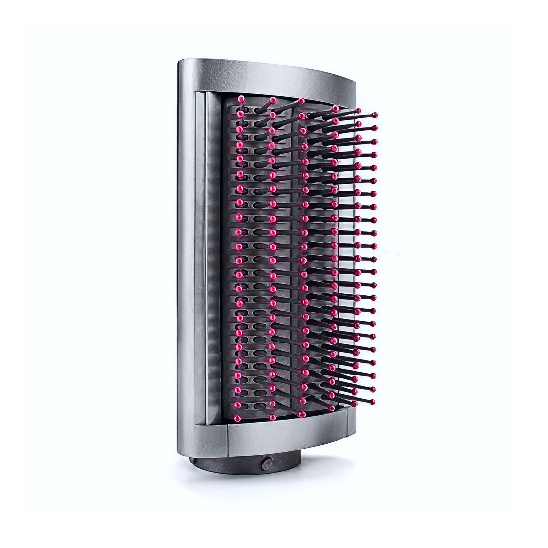 Mehka gladilna krtača je eden izmed inteligentnih Dysonovih nastavkov, ki omogoča sušenje in oblikovanje las hkrati. Prime mehka krtača za glajenje je narejena z mislijo na uporabnike z bolj finimi, ravnimi ali rahlo valovitimi lasmi, ki želijo doseči zglajen videz kot pri klasičnem feniranju, a brez vročih likalnikov. Krtača ima ravno, široko glavo z vrsto mehkih ščetin, ki so na vrhu zaključene z majhnimi bunkicami (ball tips). Te krogličaste konice so prijazne do lasišča – med krtačenjem ne praskajo kože in so tudi bolj nežne do občutljivih las (manj loma). Ščetine so razmeroma prožne in daljše, kar pomeni, da med uporabo nežno zagrabijo pramen las in ga držijo z ravno pravšnjo napetostjo, medtem ko zrak iz Airwrap ročnika piha skozi odprtine med njimi. Zračni tok sledi posebni usmeritvi (Dyson je zasnoval krtače tako, da zrak teče vzdolž pramena), zato se lasje sušijo od korena proti konicam, kar pripomore k glajenju povrhnjice las. Rezultat: pramen se z eno potezo posuši in zgladi. Mehka krtača je idealna za doseganje naravnega volumna s svilnato gladko teksturo – ni namenjena likalniškemu ravnanju na “špago”, ampak ustvarja elegantno, a mehko obliko (nekoliko zaobljen zaključek pri konicah, naravno gibanje). Prime nastavek se pritrdi na Dyson Airwrap enoto enako kot ostali (s preprostim klikom). Kombinacija toplotno odpornih ščetin in Dysonovega nadzora toplote zagotavlja, da lasje med oblikovanjem niso izpostavljeni ekstremnim temperaturam. Mehka krtača je v primerjavi s tršo (firm) krtačo bolj nežna – tudi pretok zraka se čuti milejši, saj ščetine rahlo popustijo pod pritiskom, namesto da bi las zelo močno napenjale. To je idealno za fine lase, ki potrebujejo pazljivo ravnanje brez izgub volumna. Z Prime mehko krtačo lahko uporabniki dosežejo salonsko kakovostno “brush sušenje” doma: lasje bodo zloščeni, ravnejši, a še vedno polni življenja.