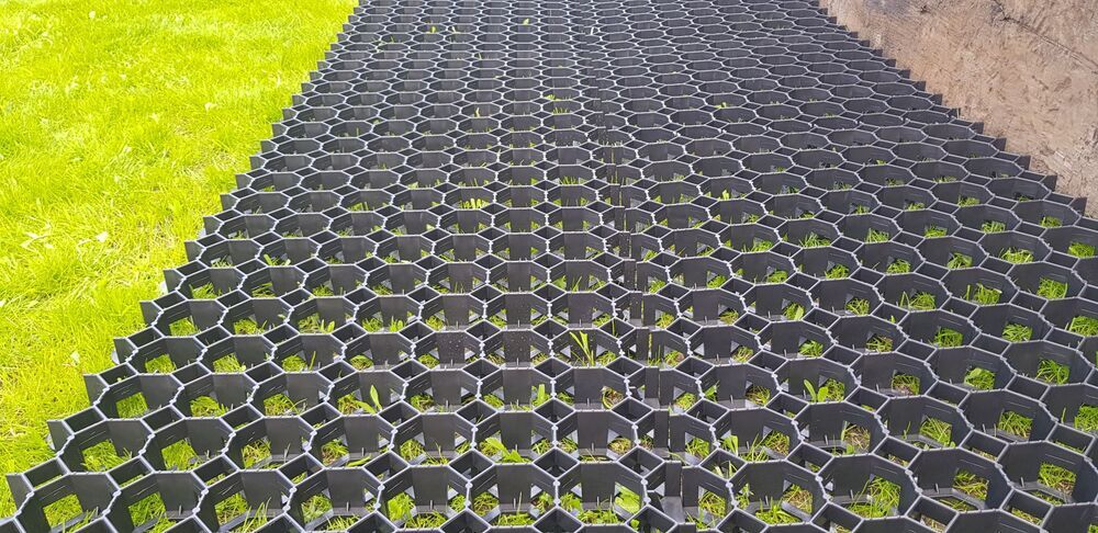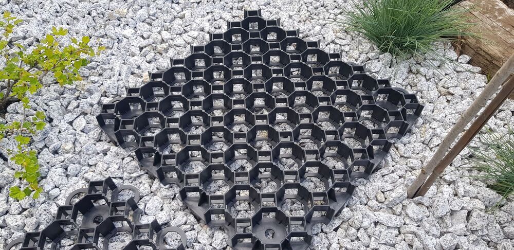 Ploščice za travo EKOGRID, dimenzij 50x50x4 cm, so idealna rešitev za ustvarjanje stabilne in dolgotrajne površine. Izdelane iz reciklirane plastike, se s svojo črno barvo naravno zlijejo z okolico. Njihova modularna zasnova omogoča enostavno namestitev in širjenje.