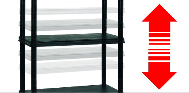 Plastične police za shranjevanje se premikajo navzgor in navzdol, kar omogoča prilagajanje višine polic glede na velikost predmetov, ki jih shranjujete. Ta fleksibilnost pospešuje organizacijo in maksimizira izkoriščenost prostora.