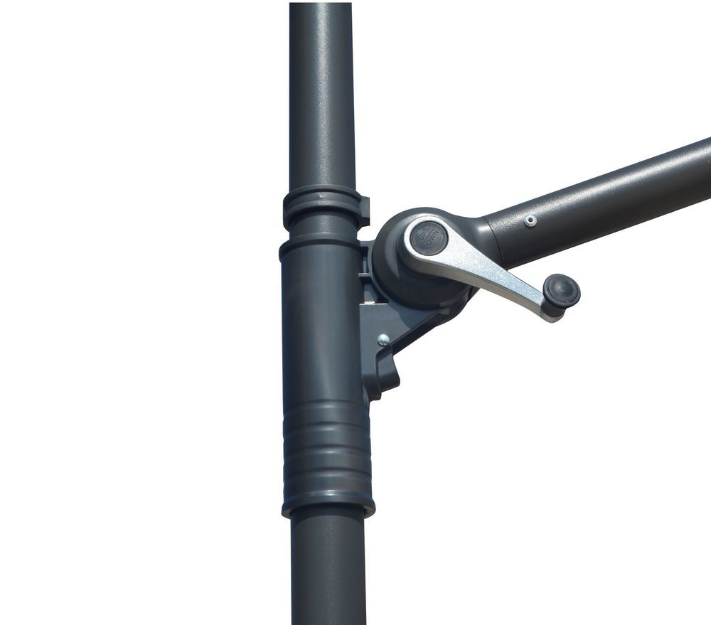 S pomočjo 360° rotacije in pedala vam senčnik omogoča, da optimalno postavite zaslonke glede na smer sonca in tako zagotovite največjo udobnost.