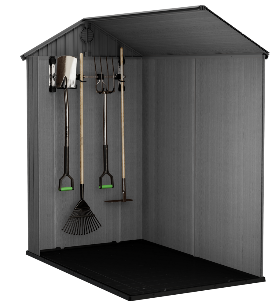 STENSKO OTVORILO Večnamensko držalo prinaša novo raven organiziranosti in praktičnosti v vaš zunanji prostor. Zasnovan za ljubitelje vrtnarjenja, ta stenski obešalnik omogoča enostavno shranjevanje in dostop do vašega vrtnarskega orodja. Od robustnih lopat do orodja z dolgimi ročaji, vse bo vedno na dosegu roke. S svojo moderno zasnovo, ki združuje funkcionalnost in stil, bo ta obešalnik nedvomno postal nepogrešljivi del vaše vrtnarske opreme.