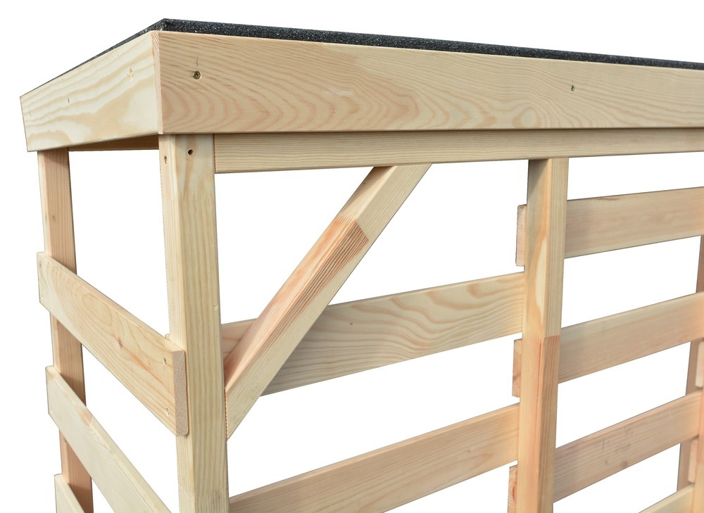 Drčo iz masivnega borovega lesa omogoča učinkovito shranjevanje lesa v vrtu, hiši ali koči. Naravna zasnova omogoča, da površino pobarvate in obdelate po lastni želji, kar drču prilagodi vašemu prostoru in estetskim preferencam.