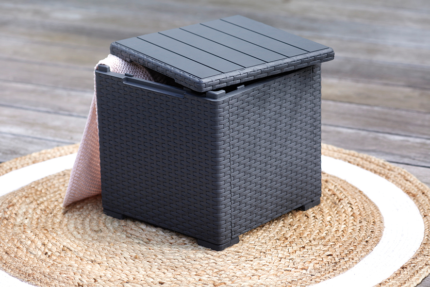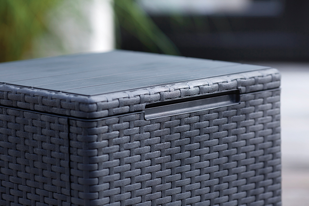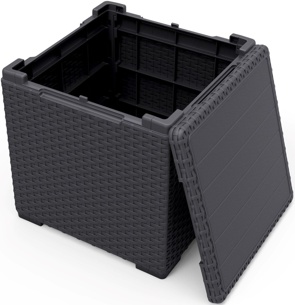 VIGO škatla v sodobni grafitni barvi združuje eleganco in funkcionalnost, saj omogoča shranjevanje in estetsko dopolnitev prostora. Narejena je iz oblikovane plastike in prenese do 30 kg bremena. Enostavno prenosljiva ter odporna na vremenske vplive, idealna za notranje in zunanje prostore.