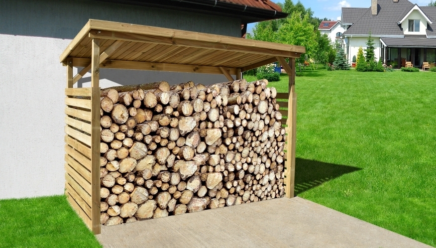 Nadstrešek prihaja v celoti montažnega kompleta s tlačno impregniranim borovim lesom, masivno streho in bitumensko kritino. Notranje mere znašajo 264 x 114 cm s skupno prostornino 5,52 m³, kar zagotavlja dovolj prostora za shranjevanje drv in druge predmete.