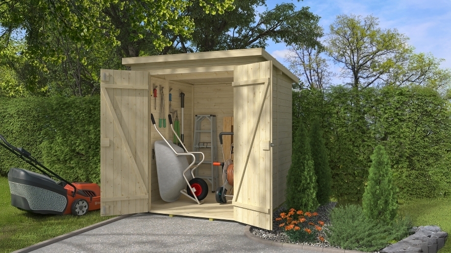 Praktična vrtna hišica iz evropske smreke za varno shranjevanje orodja in vrtne opreme. Dvojna vrata širine 115 cm omogočata enostaven dostop do večjih predmetov, trdna lesena podlaga na tramovih pa preprečuje vlago in zagotavlja dolgo življenjsko dobo. Notranji prostor 2,9 m² nudi dovolj prostora za organizirano shranjevanje.